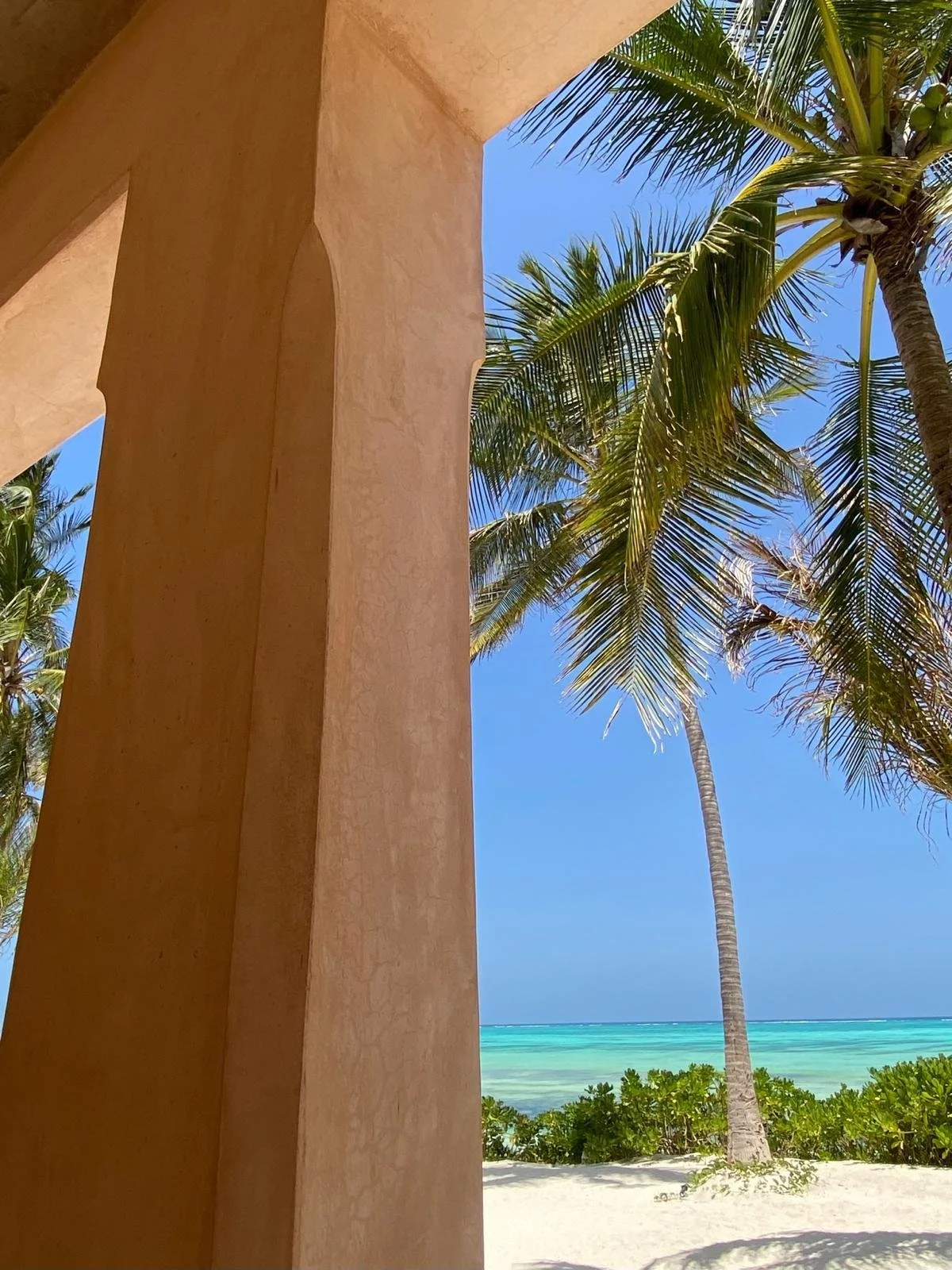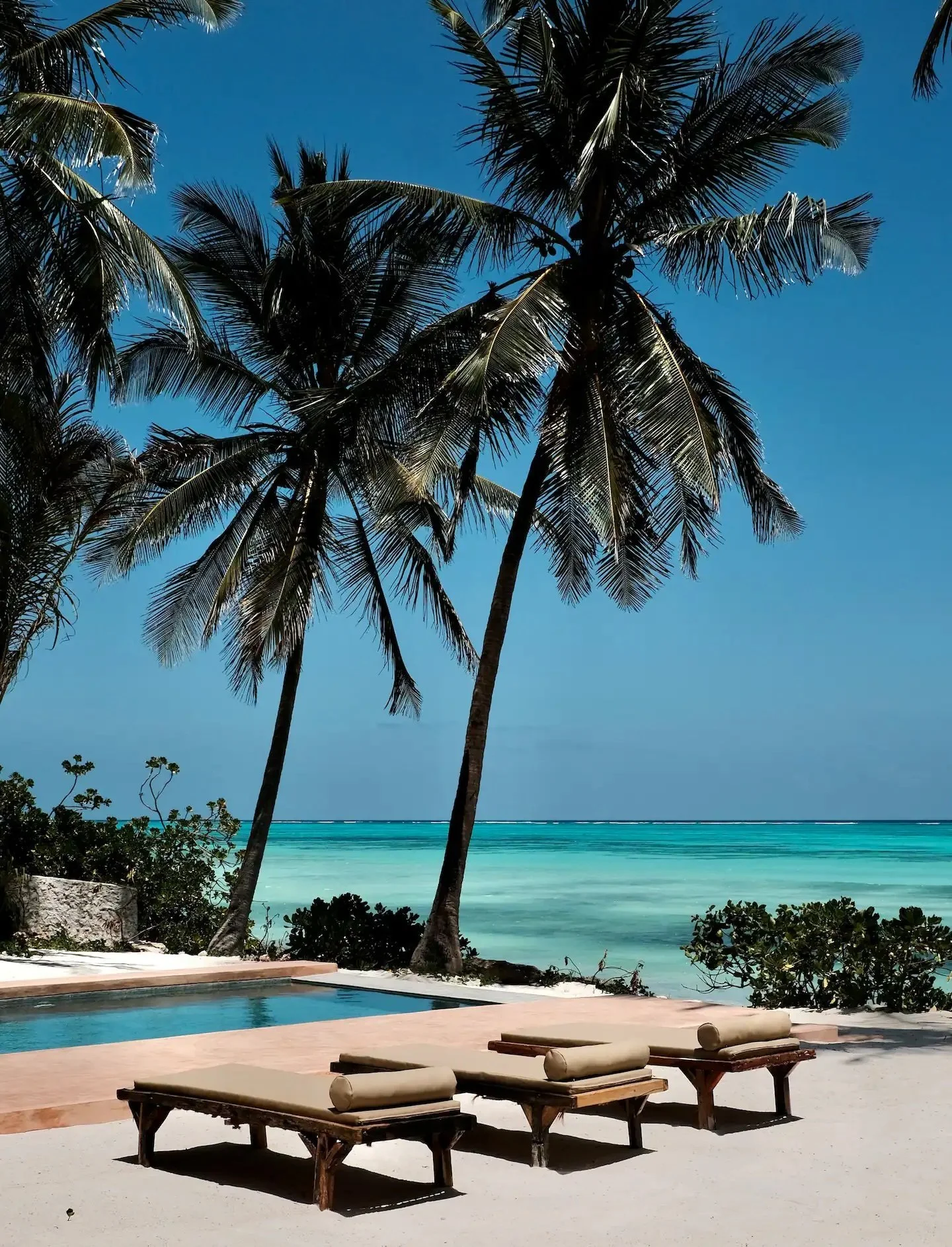 Rising from a wild coastline shaped by millions-year-old coral reefs, the villa offers a front-row seat to a constantly evolving shoreline. With the changing tides, the beach reveals coral rocks, sandbars, and lunar-like sandbanks perfect for wandering and exploration. The lagoon along Zanzibar’s southeast coast glows with spectacular turquoise hues and is known as one of the most beautiful in the world. Inland, the landscape transforms into lush greenery alive with exotic birds—and you may even spot monkeys moving through the trees.